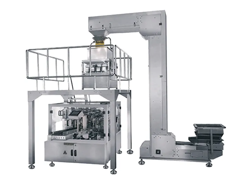 - Configurações: Balança linear de 8 cabeças, plataforma de trabalho, elevador de caçambas tipo Z